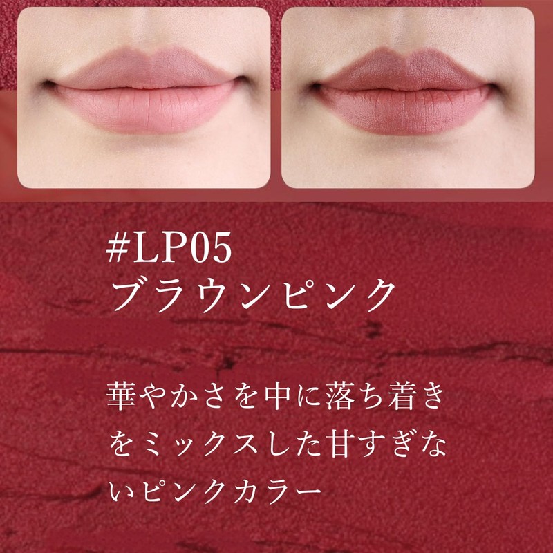 - 05 Brown Pink: For women who are both cute and pretty, the muddy texture lip has a highly adherent texture that will last for a long time. It is a gorgeous pink color, but not too sweet, and it creates a woman with a long lasting impression