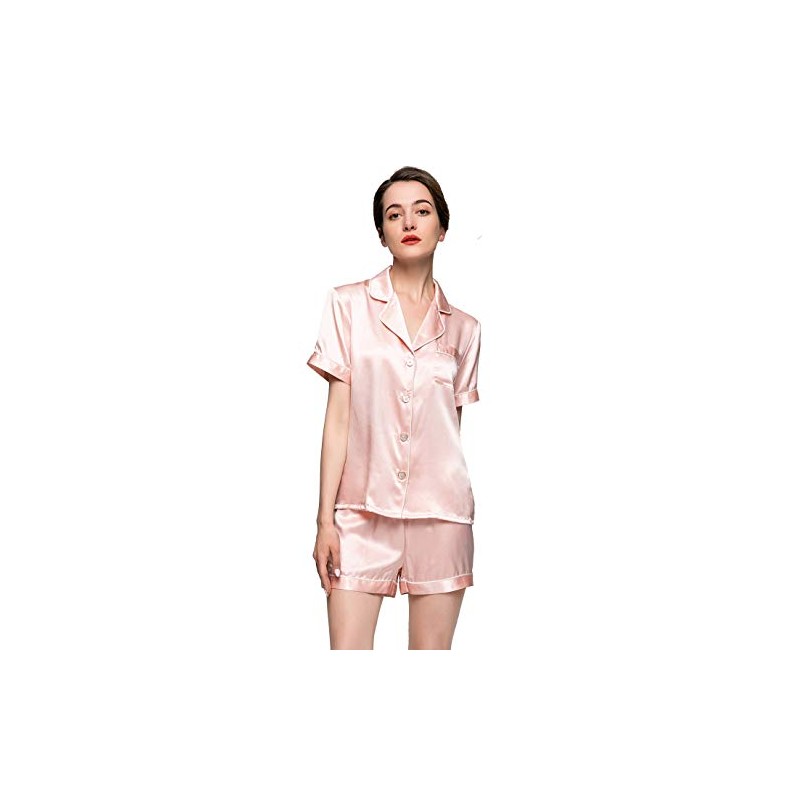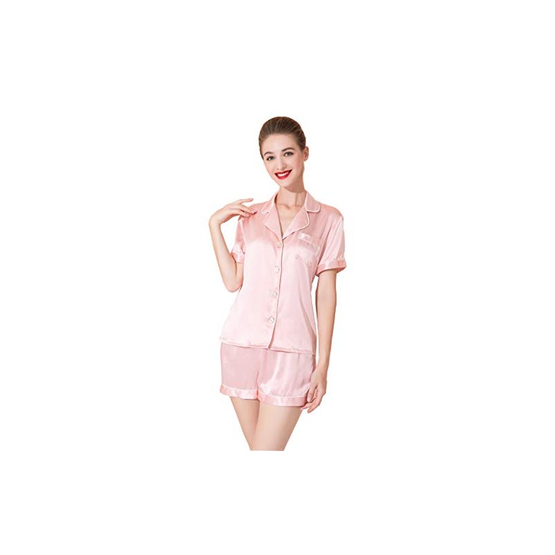 LEPTON 100% Mulberry Silk Short Sleeve Pajama Set (as1, alpha, l, regular, regular, Standard, Pink)