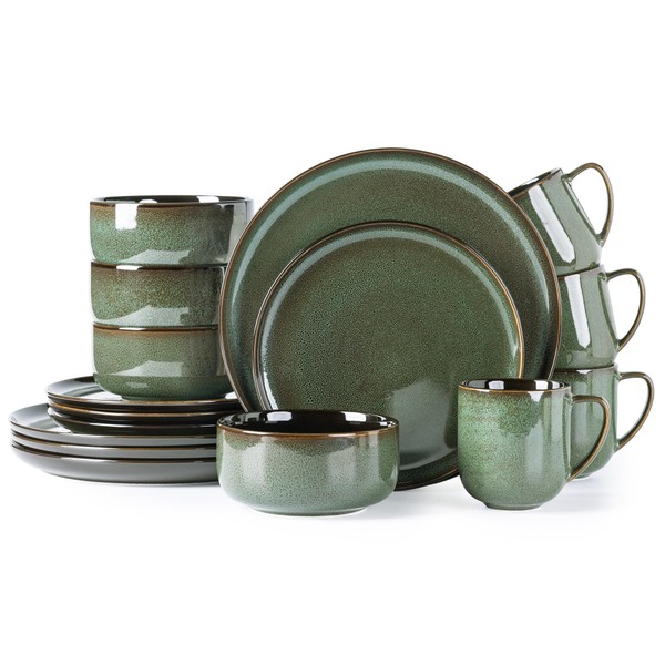 LERATIO Ceramic Dinnerware Sets for 4,16-PieceReactive Glaze Plates and Bowls Set with Mugs,Highly Chip and Crack Resistant | Dishwasher,Microwave & Oven Safe Dishes set-Green