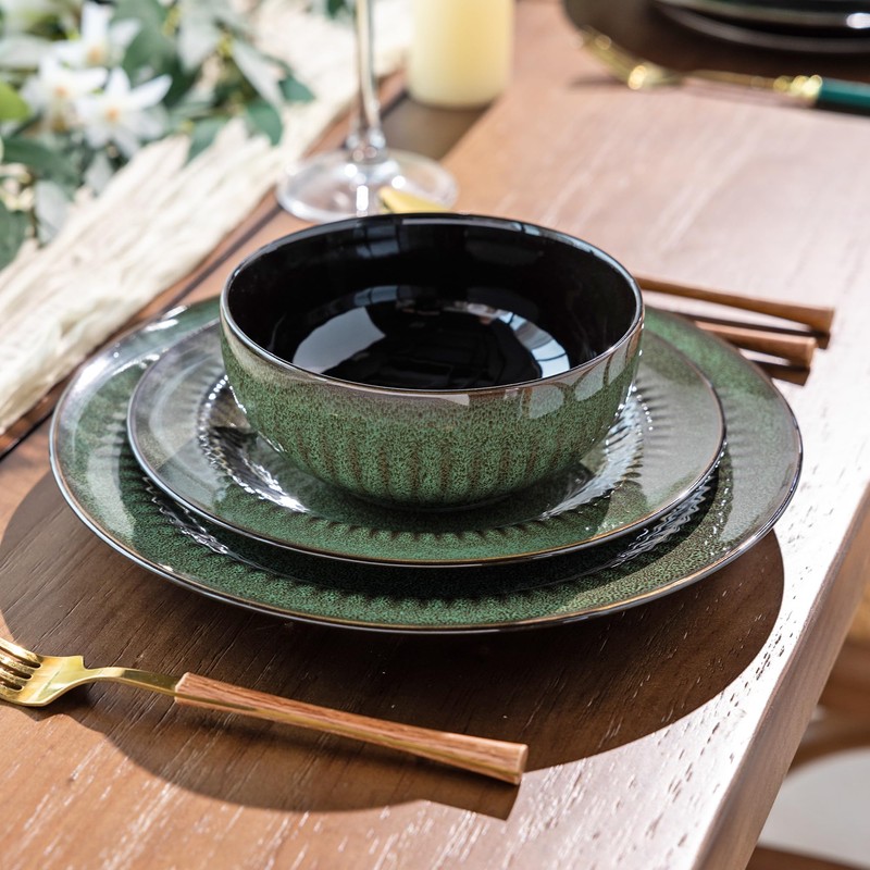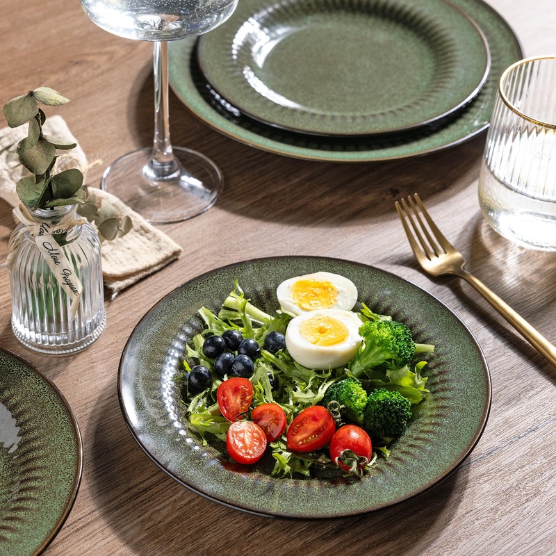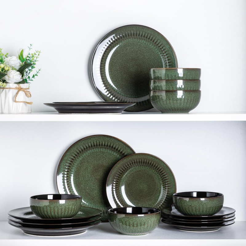 LERATIO Ceramic Dinnerware Sets for 6,Handcraft Embossed Stoneware Plates and Bowls Sets,Highly Chip and Crack Resistant | Dishwasher & Microwave & Oven Safe Dishes set,Service for 6 (18pc)-Green