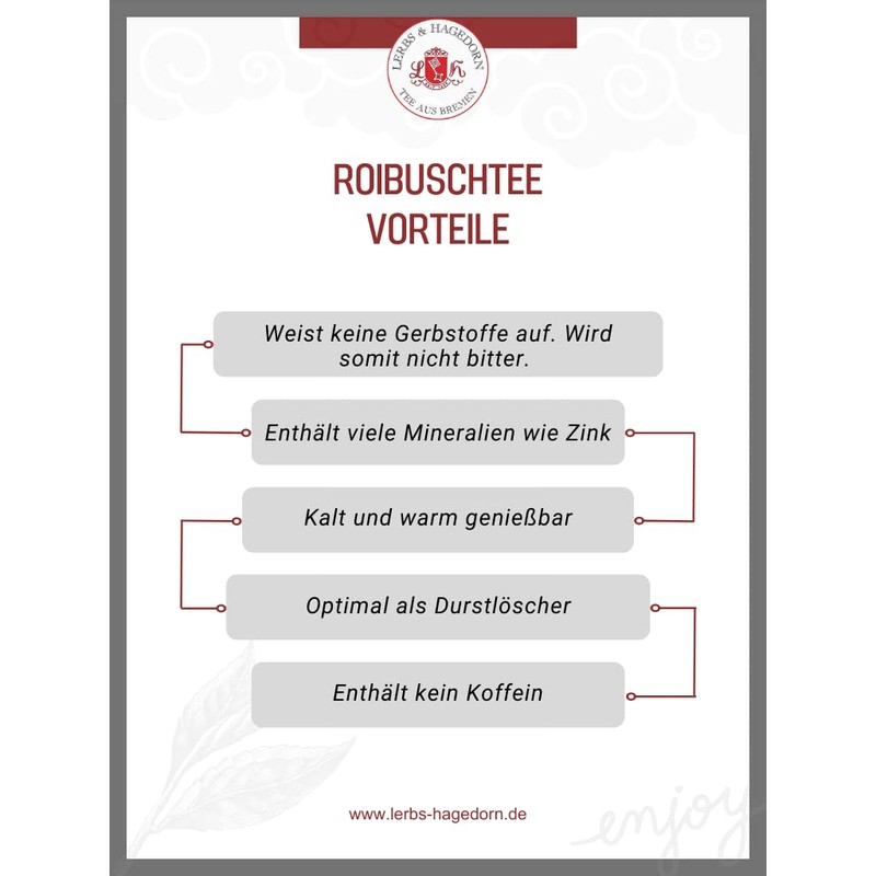 - Enjoy this tea hot or cold and let yourself be inspired by its fruity taste. With Lerbs & Hagedorn Roibuschtee Cranberry you will experience unparalleled tea pleasure