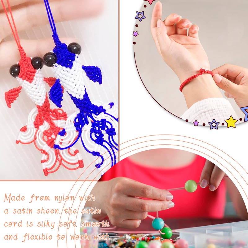 - 💝 Great for Craft Projects: The satin cord was a great way to string them up. Great for making necklaces, friendship bracelet, jewelry, Chinese knotting, macrame keychains, gift wrapping, beading and DIY projects.