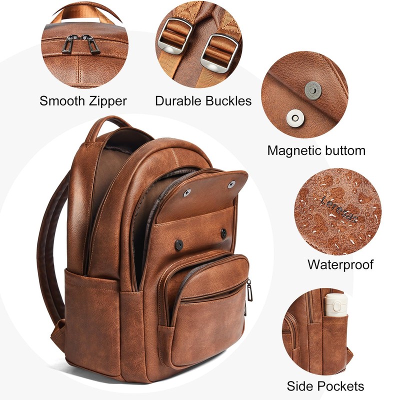 Leresas 37L Backpack Purse for Women Men for Work Travel BackPack Vegan Leather Laptop College Daypack Shoulder Bag Brown