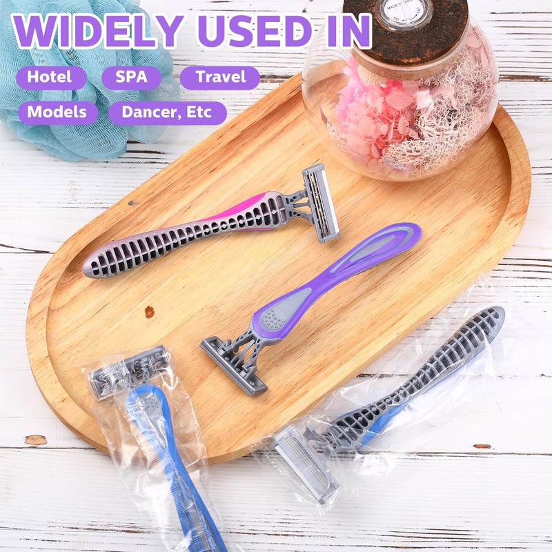 - Individually Packaged: the 3-blade disposable razors are individually packaged, clean and hygienic, easy to use and carry; Suitable for hotels, saunas, SPAs, travel, donations, collectives, etc