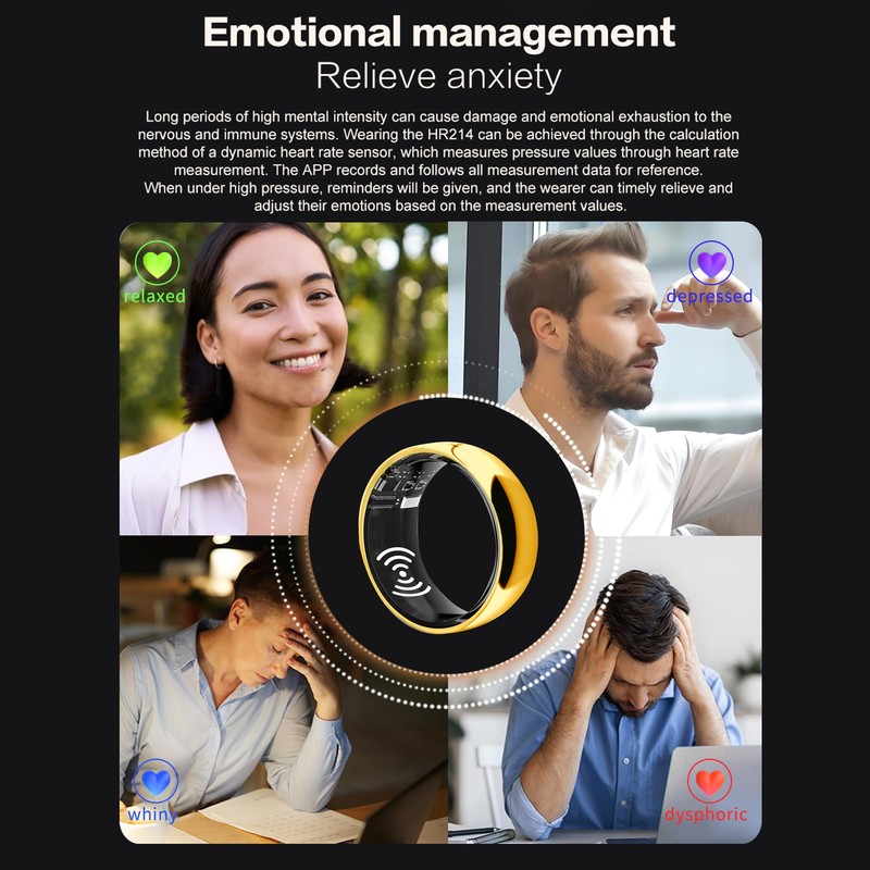 - ★Heart rate monitoring:The Ring can monitor heart rate in real time and send out an alarm when the heart rate is abnormal to ensure user safety.Heart rate monitoring is achieved by capturing heart beat signals through optical sensors or electrode sensors