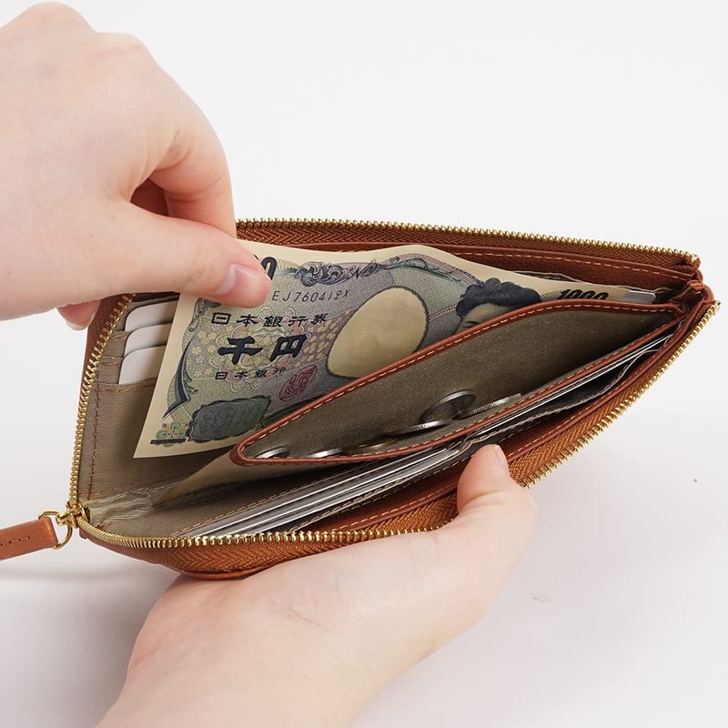 Les.conni Women's Long Wallet, Genuine Leather, L-Shaped Zipper, Slim, Thin, Cowhide Leather, Long Wallet, Black