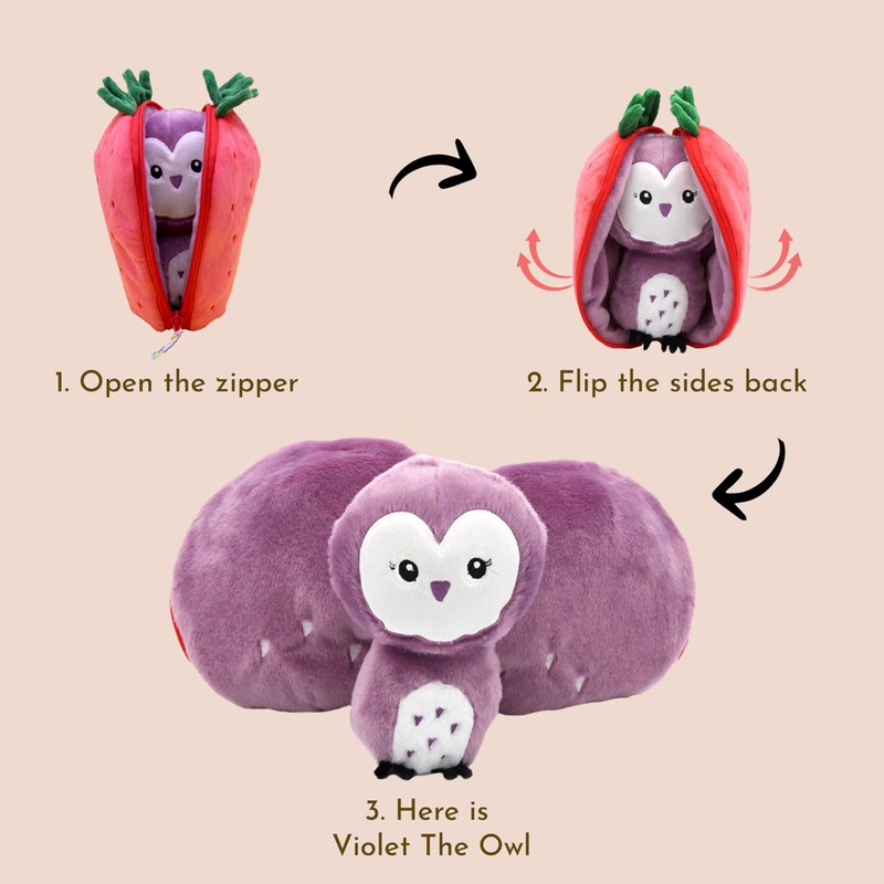 - Encourages Imaginative Play: Violet the Owl inspires creative storytelling by transforming from an Strawberry into a Owl. Perfect for sparking imaginative play, this reversible plush toy helps children and adults create unique adventures and explore new worlds through interactive fun.