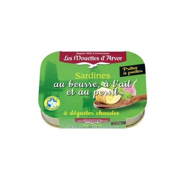 Les Mouettes d'Arvor Sardines w/ Butter & Garlic (Persillade)