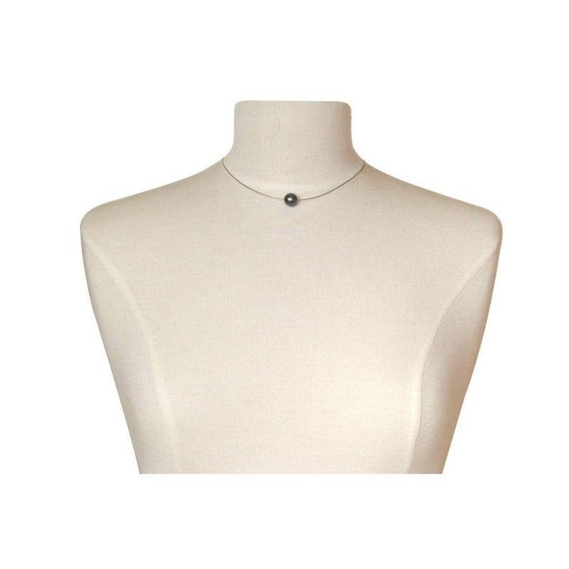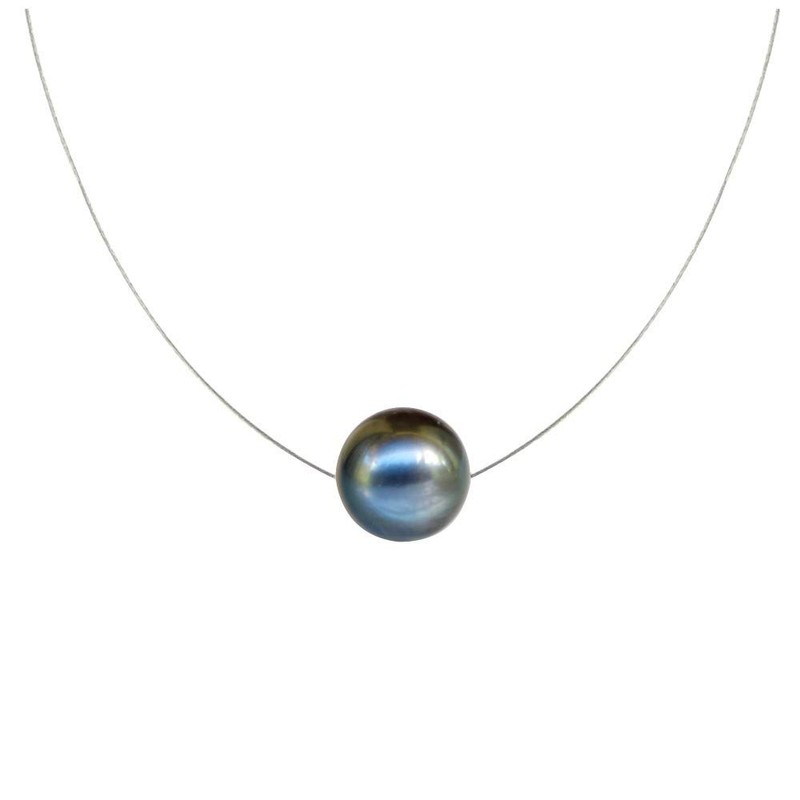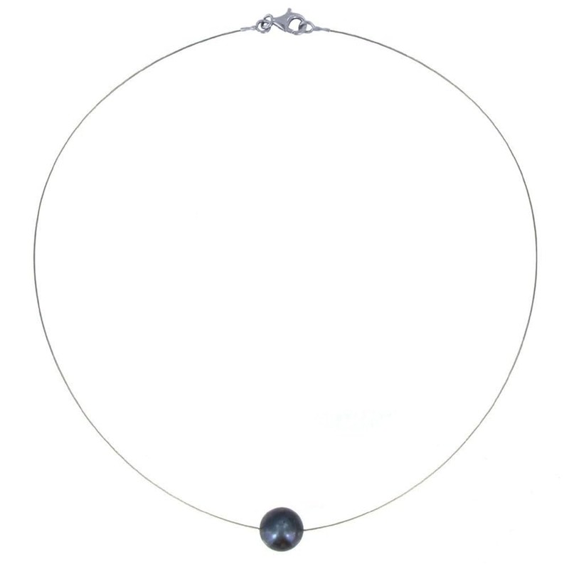 LES POULETTES BIJOUX - Silver Necklace Solitaire Pearl 11mm - Classics - Black