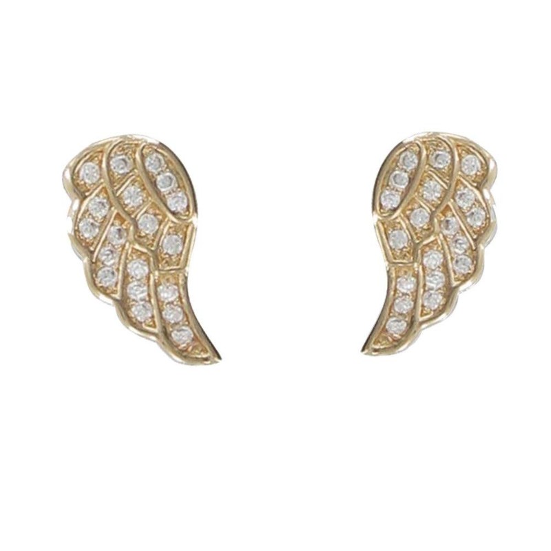 LES POULETTES JEWELS - Gold Plated Earrings Studs Angel Wing and Rhinestones