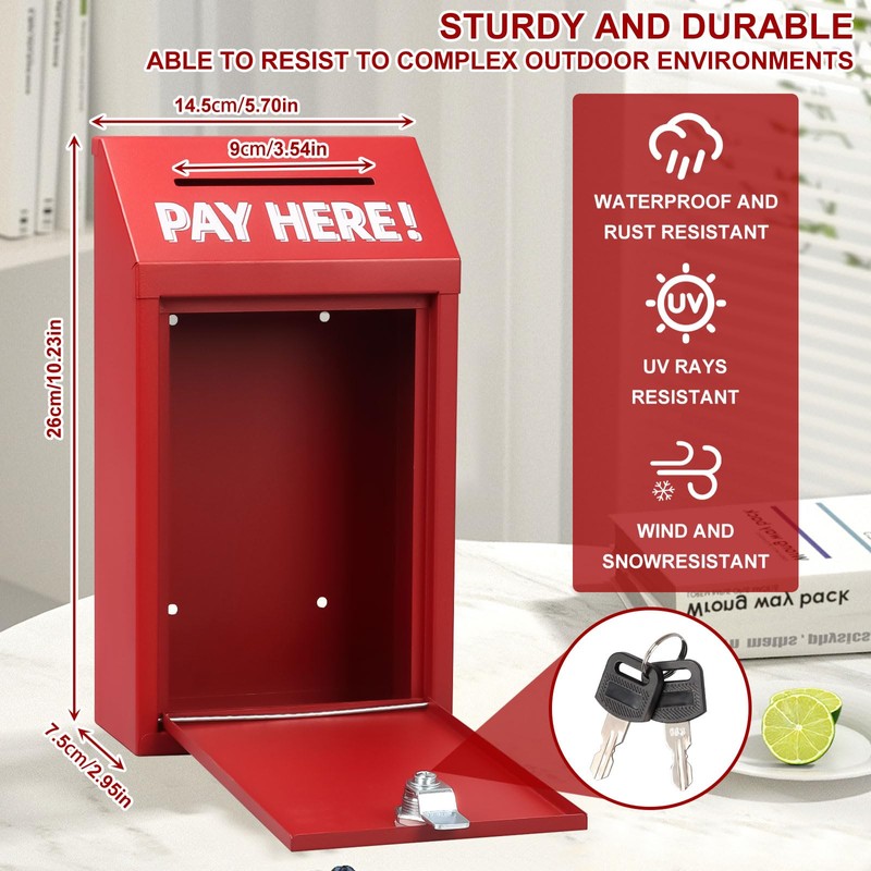 - Easy Installation: Our outdoor ballot box is pre-drilled on the back, you can install nails and hooks (not included) in it, and then hang it directly on the wall, door, fence or other places you need, or place money collection box directly on a flat surface such as a desktop. Simple installation process can be convenient for you
