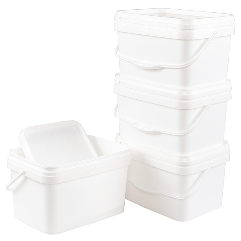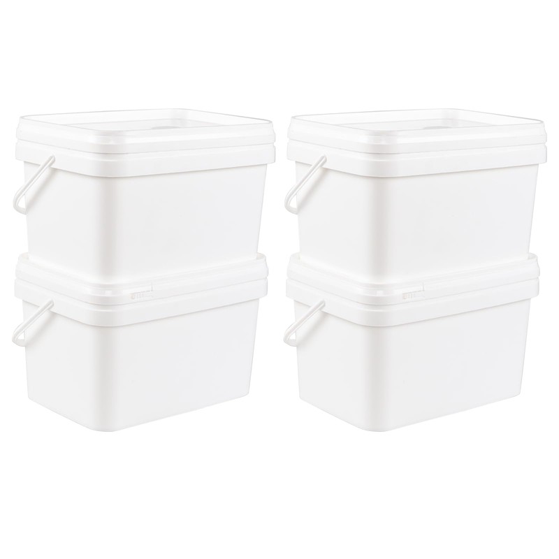 Lesbin 3 Gallon Plastic Utility Industrial Pail with Handle, 4-Pack White Rectangular Bucket with Snap Lid