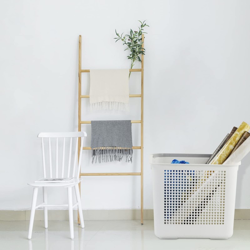 Lesbin 35 L Plastic Laundry Storage Basket, White Laundry Hamper with Handle, 4-Pack