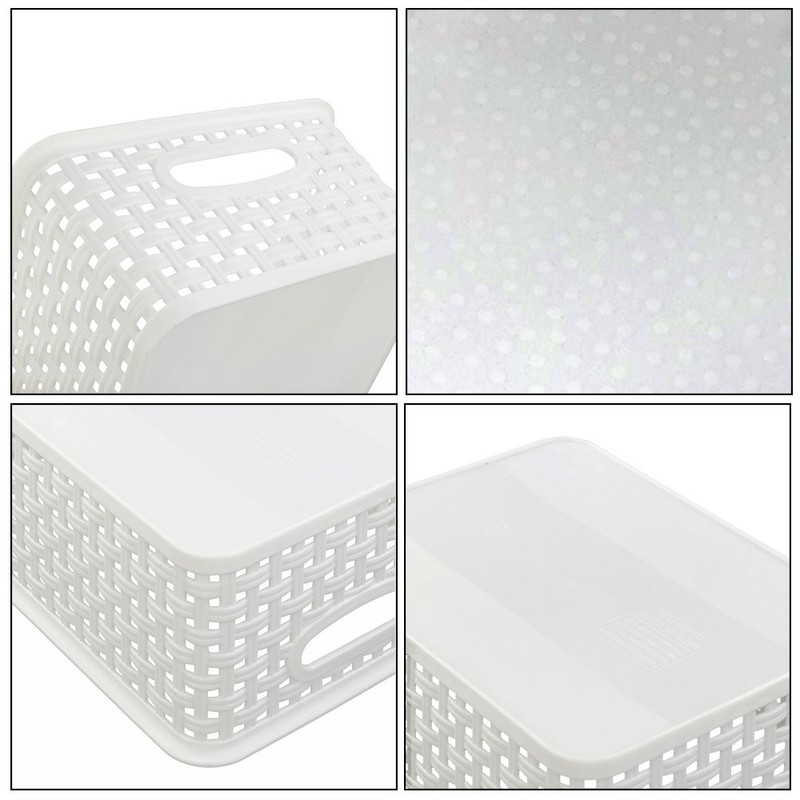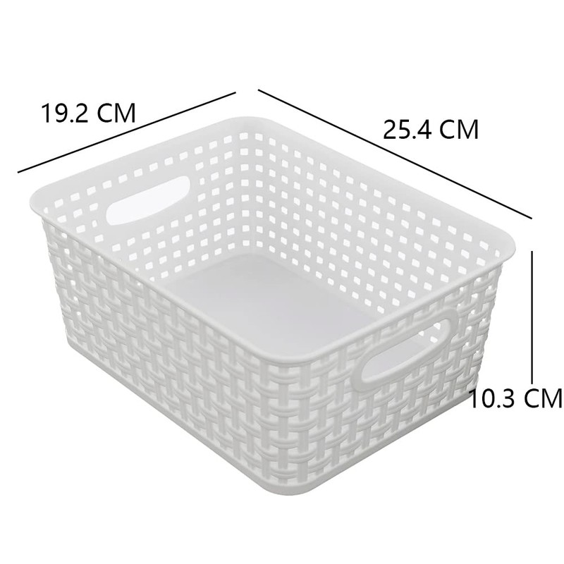 Lesbin Set of 4 Plastic Storage Basket, Weave Basket Small, White