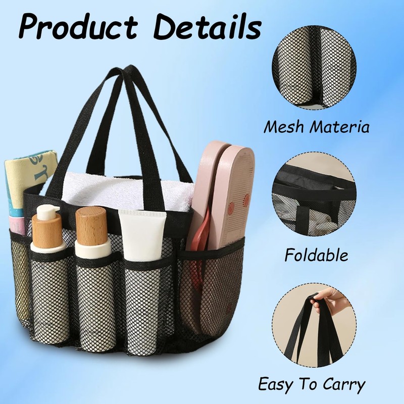 - Sufficient Capacity:The mesh shower caddy Bag is equipped with 7 compartments. There are 7 compartments of different sizes distributed around the bag body. With a large capacity, it can meet your needs for storing various items and is extremely practical,making your life more organized.And it can be easily folded for convenient carrying.