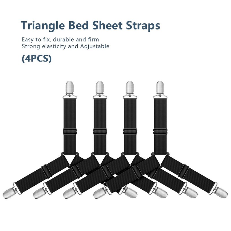 Lesfit Adjustable Triangle Bed Sheet Fasteners grippers fitted sheet clips sheet straps suspenders for bedding, Black(4 packs/set)