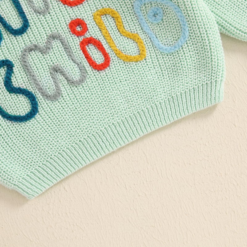 Lesimsam Toddler Baby Boy Girl Sweater Wild Child Embroidery Knit Sweater Oversized Knitted Sweatshirt Fall Winter Clothes (Green, 9-12 Months)