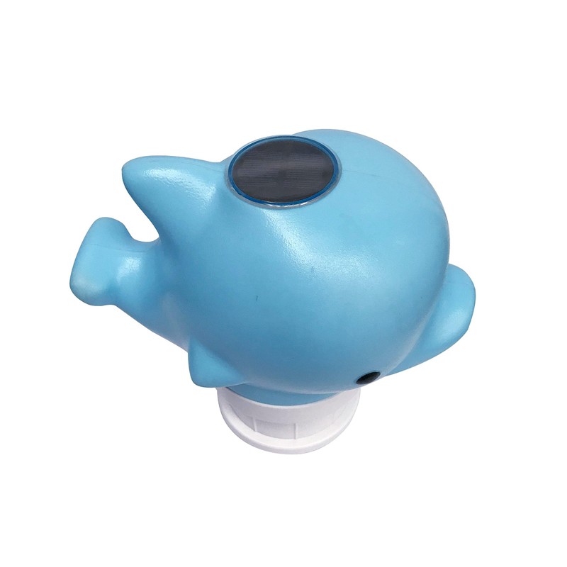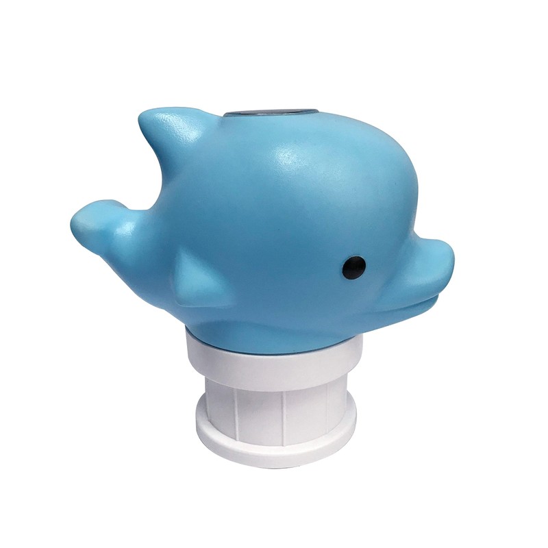 Heavy-duty chlorine tablet floater. Solar dolphin design makes your pool more vibrant! The bottom can rotate to control the release size of chlorine.