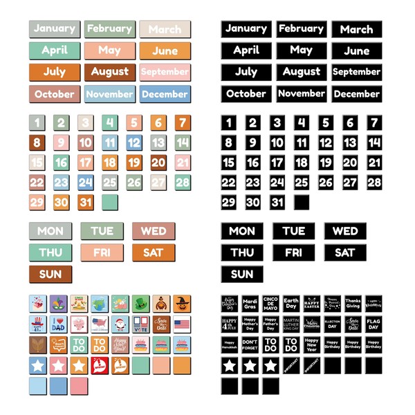 • 【Value Pack】You will receive 31 calendar date magnets,12 monthly and 7 weekly magnets,29 holidays and special days magnetic labels,7 blank dry erase magnetic labels.The magnets are very colorful,moderate size and thickness,allowing you to easily master the calendar.