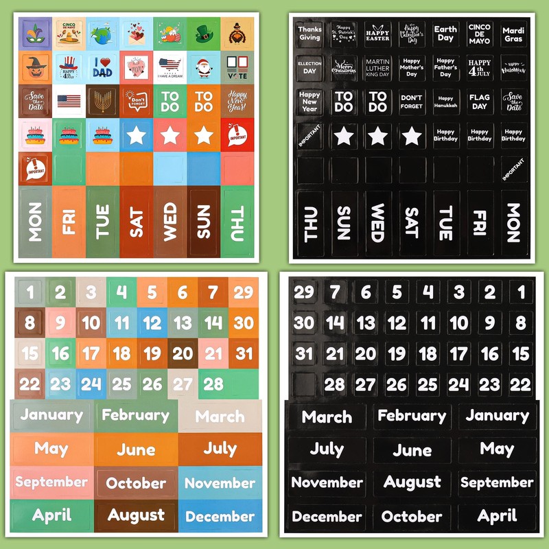 • 【Double-Sided Design】Our month week and holiday magnets labels adopts a double-sided design,with one side featuring a colorful background and the other side featuring a simple and elegant black background,vivid and lovely,can well attract people’s attention,adding the fun and pleasant atmosphere.In addition,you can easily change the month and date of the calendar and record important events.