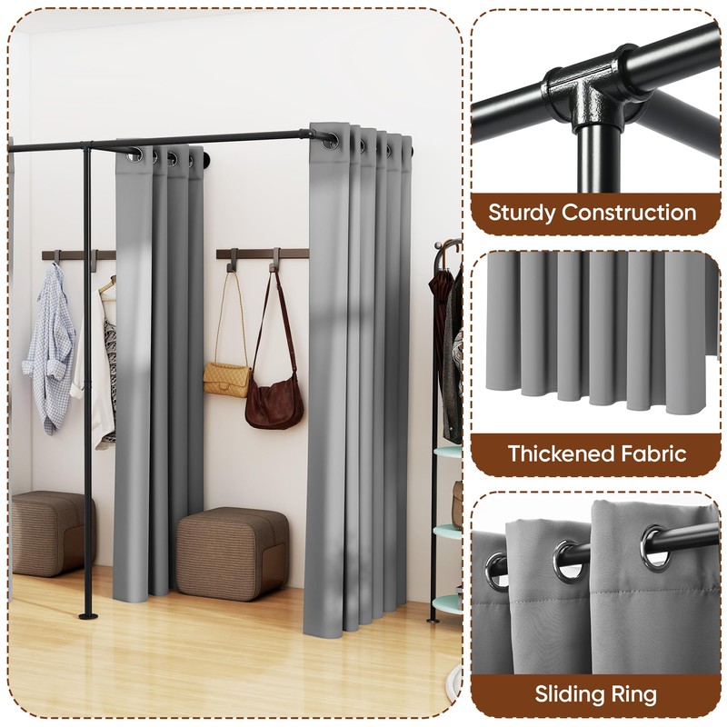 - Easy to install: The clothing store changing room comes with complete accessories, pre-drilled holes on the poles for easy installation. It is equipped with fixing screws for more secure mounting of the frame. The sliding ring design makes every pull of the curtain easy and smooth