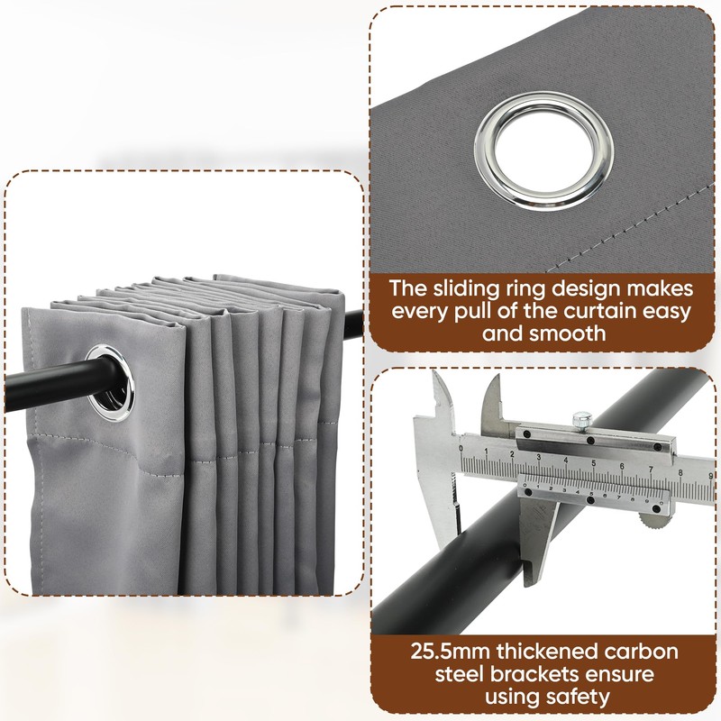 - Sturdy Structure: The support structure of the changing room divider is made of thickened steel pipes, with thickened metal brackets that have strong load-bearing capacity, ensure the safety of use. The double dressing room uses premium quality double-sided blackout cloth, ABS rings, and thickened carbon steel brackets, after baking paint and sewing process, not easy to rust or fade
