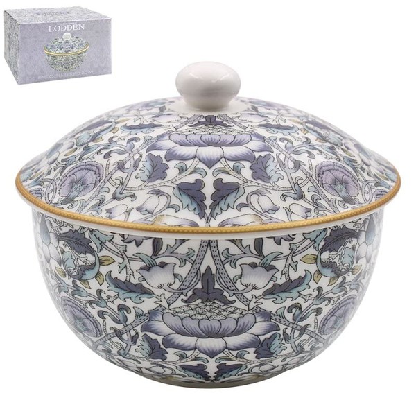 - TEXTILE DESIGN: This bowl features a decorative and fancy textile art inspired by William Moris' Lodden design.