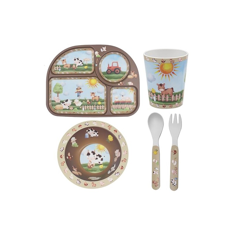 Lesser & Pavey Rpet Eating Farm Set for Eating & Kitchen | All-in-One Plates and Bowls Set with Spoon & Fork | Printed Dinner Set for Home | BPA Free Healthy Material Eating Set for Kids & Adults