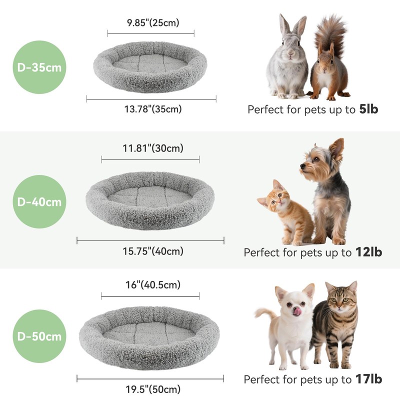 - Cat bed for indoor use: This is a great, comfortable, and warm gift for cats and puppies at home. Very suitable for pets to curl up on the cat bed. Put it anywhere your rabbit or cat likes, such as on a cat climbing frame, sofa, floor, or window. Lightweight material is easy to move and the soft and fluffy polycoton makes cats love this round bed