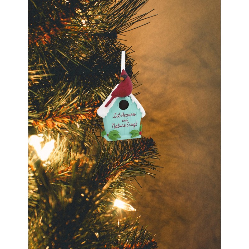 - Festive Sentiment: The birdhouse is inscribed with the uplifting phrase "Let Heaven and Nature Sing!", adding a touch of holiday cheer.