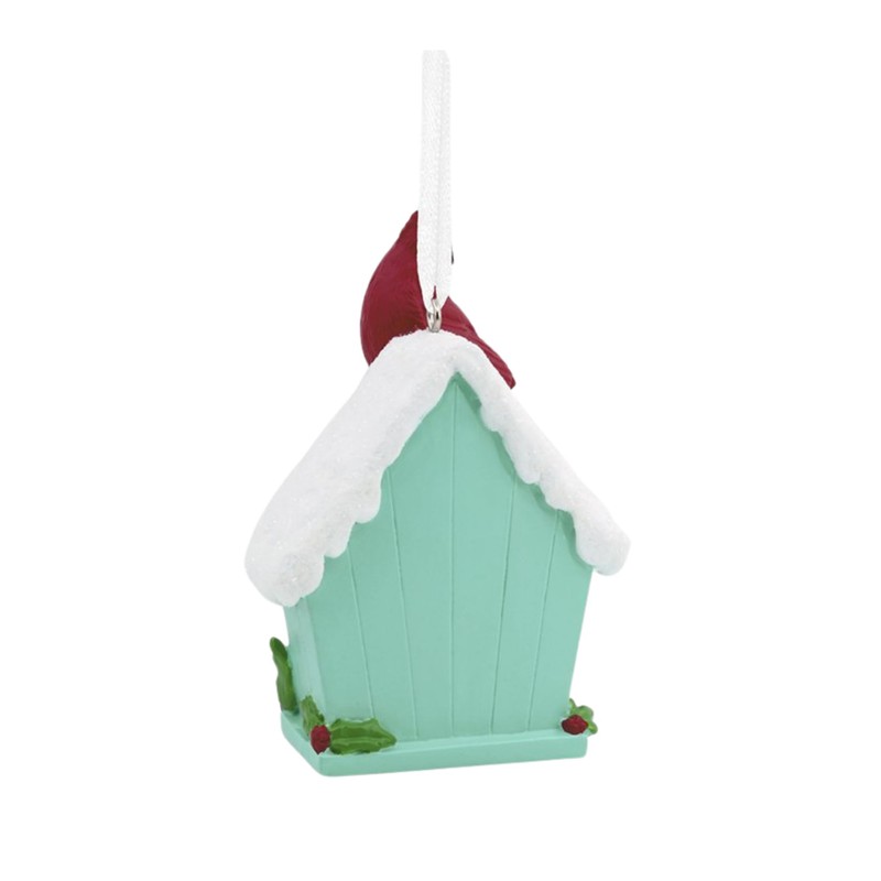 - Decorative Birdhouse: This charming resin design features a snow-covered birdhouse with a vibrant red cardinal perched on top and holly trim accents.