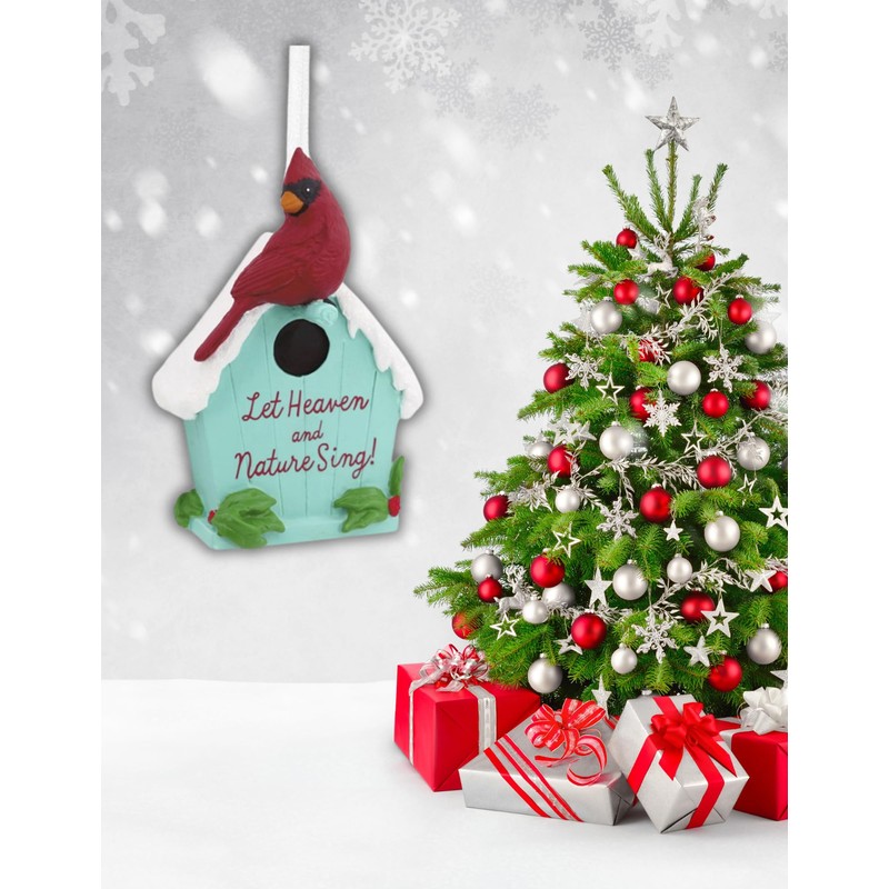 Let Heaven and Nature Sing Resin Cardinal Birdhouse Decor, 3.5 inches Christmas Keepsake Ornament