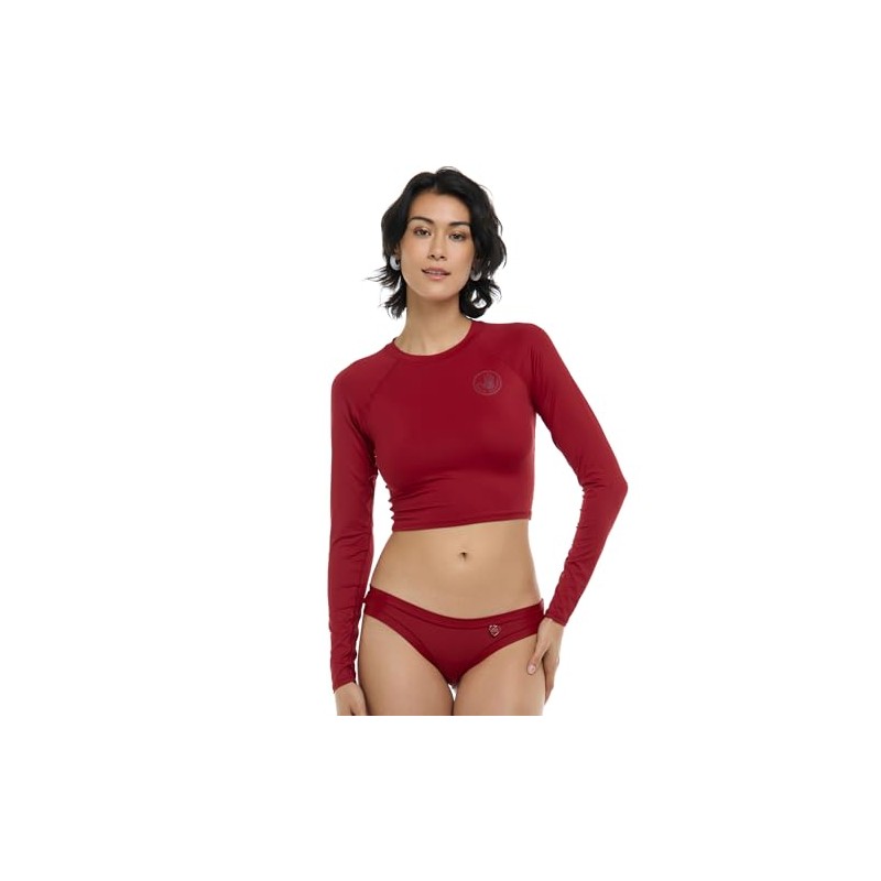- Stylish Cropped Rash Guard for Women - This women's swim shirt features a classic long-sleeve design with a cropped fit and comfortable flatlock seams, perfect for a long day of beach or poolside fun