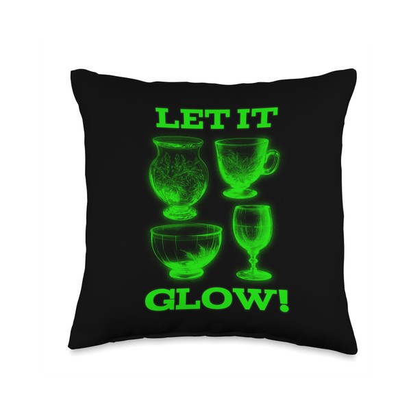 Let It Glow! Glowing Glassware Green Glowing Glass Let It Glow! Glowing Glassware Green Glowing Uranium Glass Throw Pillow