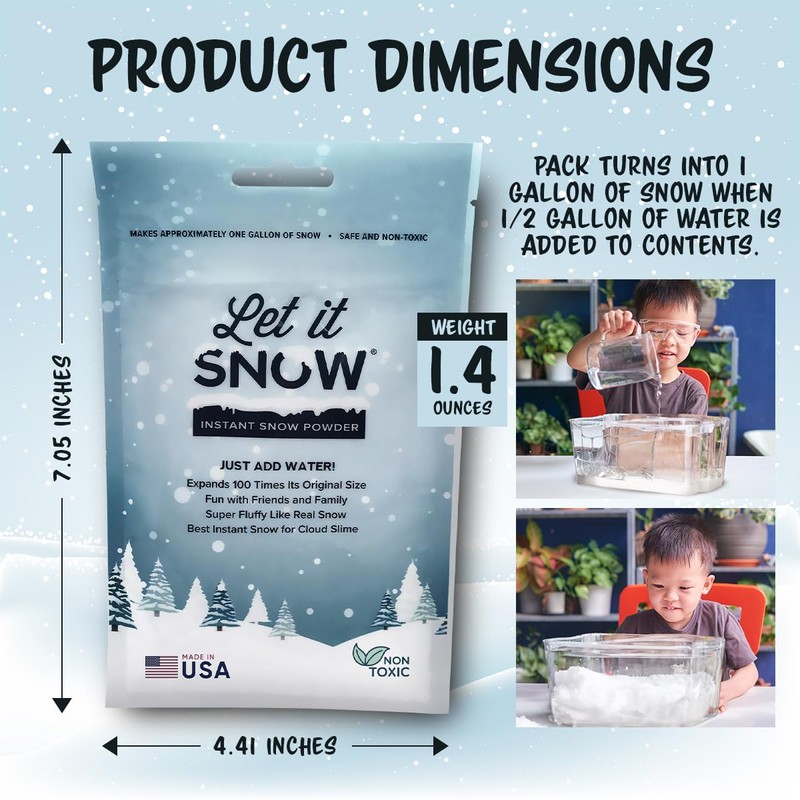 Let it Snow Let it Snow Instant Fake Snow Powder C Made in USA, Perfect for Kids, Holiday Decorations, Sensory Play, and Slime - 1 Pack - Makes 1 Gallon
