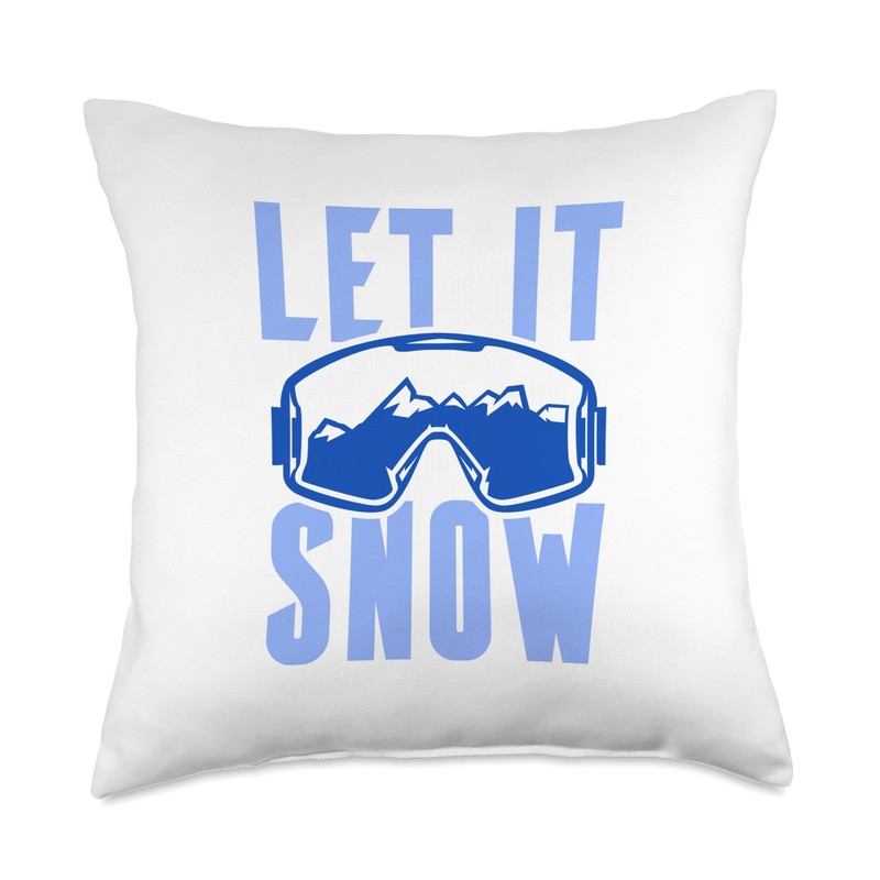 Let It Snow Ski Goggles Throw Pillow, 18x18, Multicolor