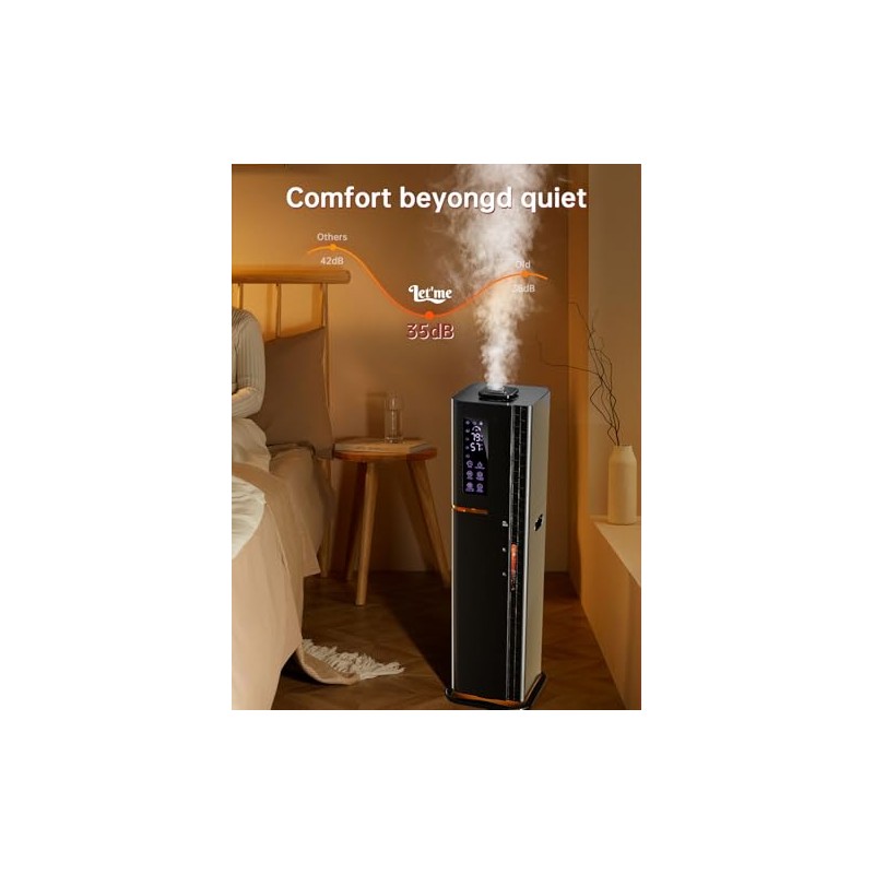 - Modes - One TouchThis large room humidifier offers versatile options to customize humidity levels to your lifestyle. Choose from the Manual Mode with three mist levels (Low: ml/h; Medium: ml/h; High: ml/h), the Auto Mode that allows you to set your desired humidity between %RH and %RH, or the Sleep Mode, which automatically dims the lights and reduces noise to below dB for a a peaceful nights sleep.