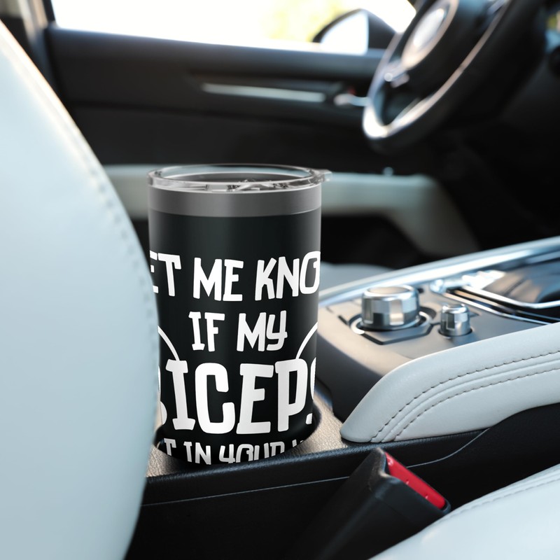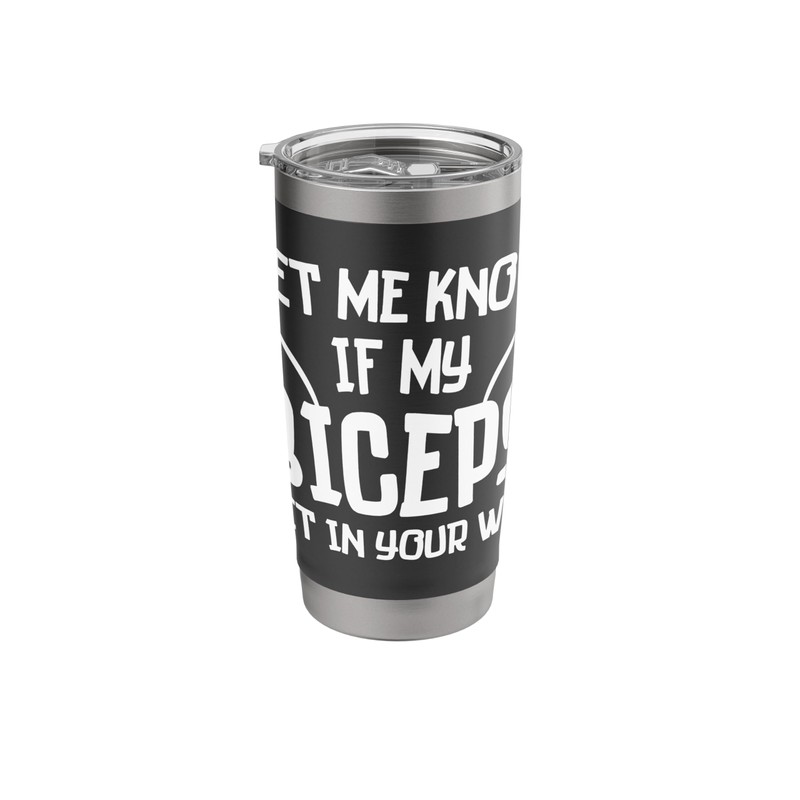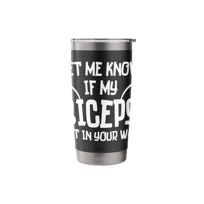 Let Me Know If My Biceps Get in Your Way Funny Gym Workout Stainless Steel Insulated Tumbler