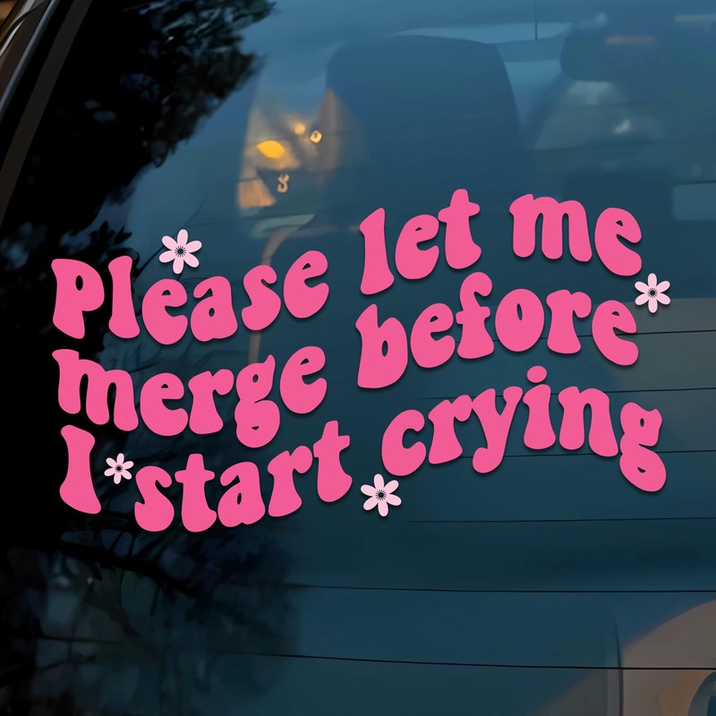 Let Me Merge Before I Start Crying Car Decals Funny Girly Flower, Mental Health, Humor Car Window Accessories Affirmations Vinyl Waterproof 6 Inches Bumper Decal Gift for Mom Dad Friend