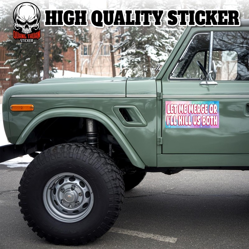 Let Me Merge Or I'll Kill Us Both | Bumper Sticker or Car Magnet | Sarcastic Funny Driver Magnetic Bumper Sticker for Cars [7.5x3.75]