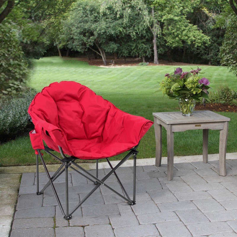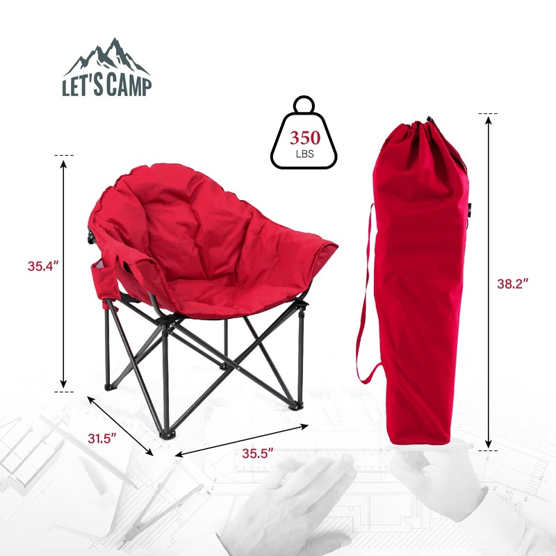 LET'S CAMP Heavy-Duty Oversize Camping Chair Round Moon Saucer Chair Padded with Cup Holder and Carry Bag Folding Chair,2 Pack,Red