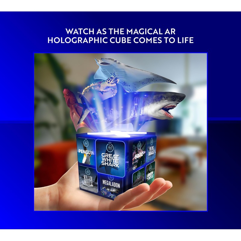 - WATCH THE HOLOGRAPHIC COME TO LIFE IN YOUR HANDS: Simply point your smartphone at our magical holographic cube and watch it come to life. Learn about creatures of the deep as you go on an immersive learning experience like no other. Proven to deliver five times the learning power of reading, this Augmented Reality Cube is sure to be a winner for parents and children alike. Each pack comes complete with 16 Augmented Reality Experiences.