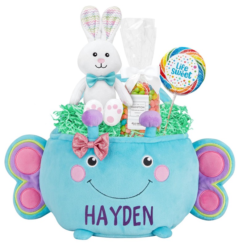 Let's Make Memories Let's Make Memories Personalized Easter Basket for Kids - Plush Furry Critter - For Boys and Girls - Custom Name - Fillable - With Optional Easter Basket Stuffers - Butterfly
