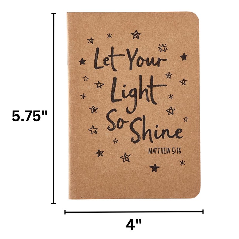 - INSPIRATIONAL NOTEBOOK: This beautiful notebook features a verse from Matthew 5:15, "Let Your Light So Shine" on the cover, serving as a daily reminder to shine your light and share your faith with others.