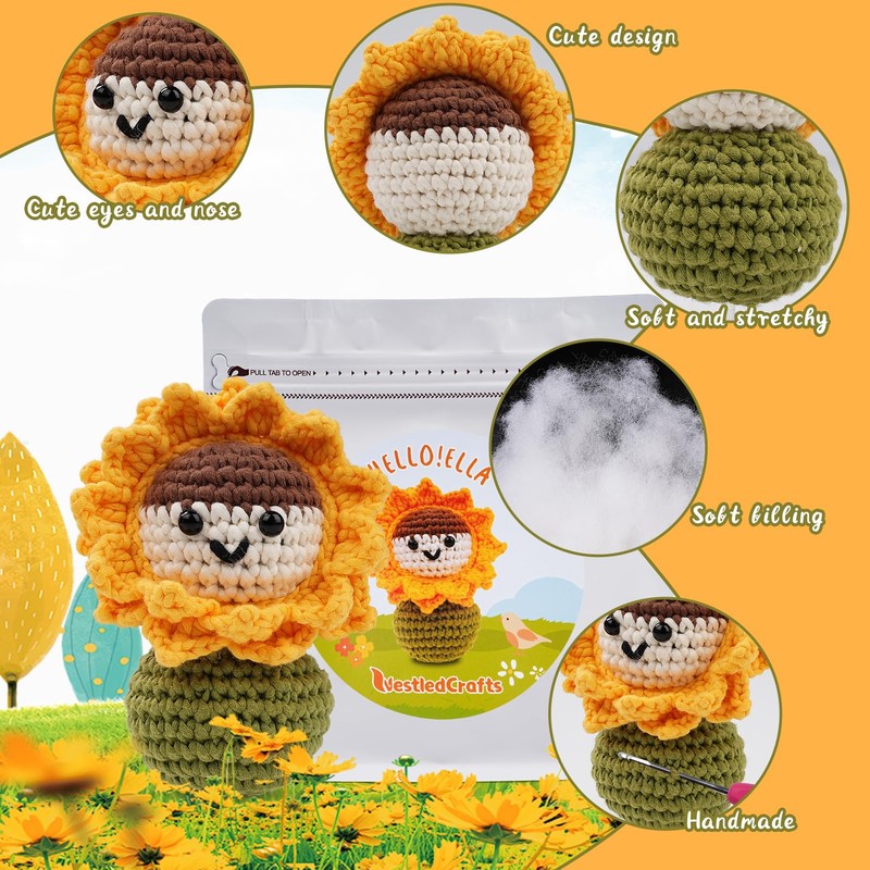 Immerse yourself in the world of crochet and enjoy a fun, creative experience that improves your craft skills. Start your crochet journey today with this charming crochet kit!