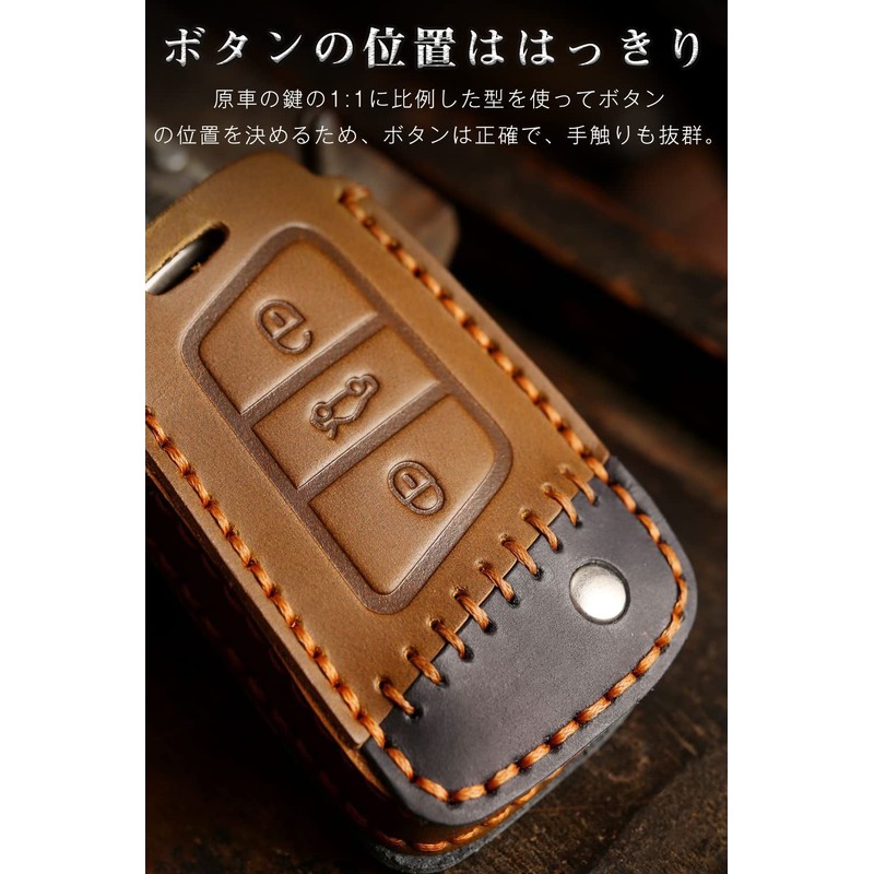 - PREMIUM MATERIALS: This Volkswagen key case is a smart key case made of premium cowhide leather material that feels good to the touch. Leather material with thick stitching, durable, cool and fashionable key case. It creates a luxurious look. Simply attach this key case to transform your smart key into a luxury car key