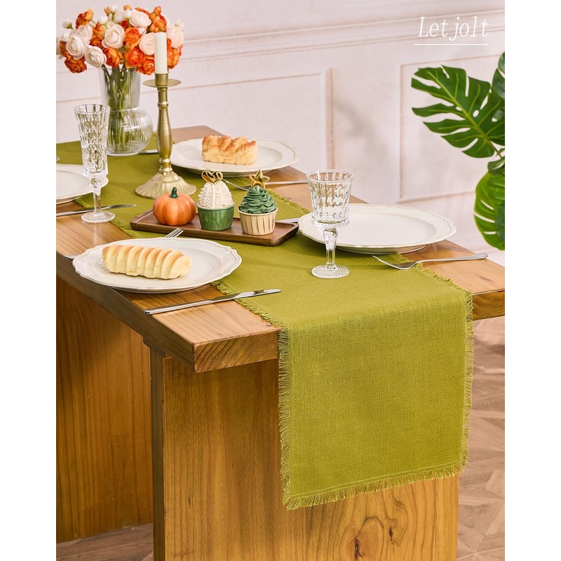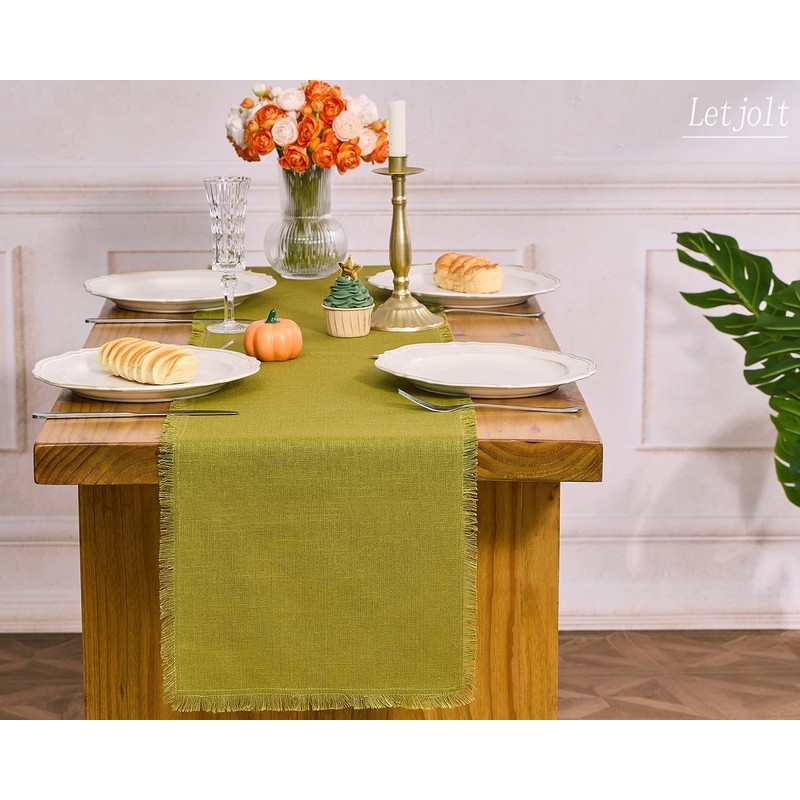 Letjolt Farmhouse Table Runner 72 Inches Olive Green Table Runner Slub Texture Cotton Linen Table Runner Rustic Home Table Decoration Wedding Decor