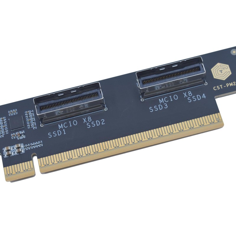 Enhanced Storage Capacity: This card transforms a single PCIe x16 slot into two MCIO x8 ports, enabling you to connect up to four U.2 NVMe SSDs using 2 MCIO x8 to dual U.2 SFF-8639 cables.