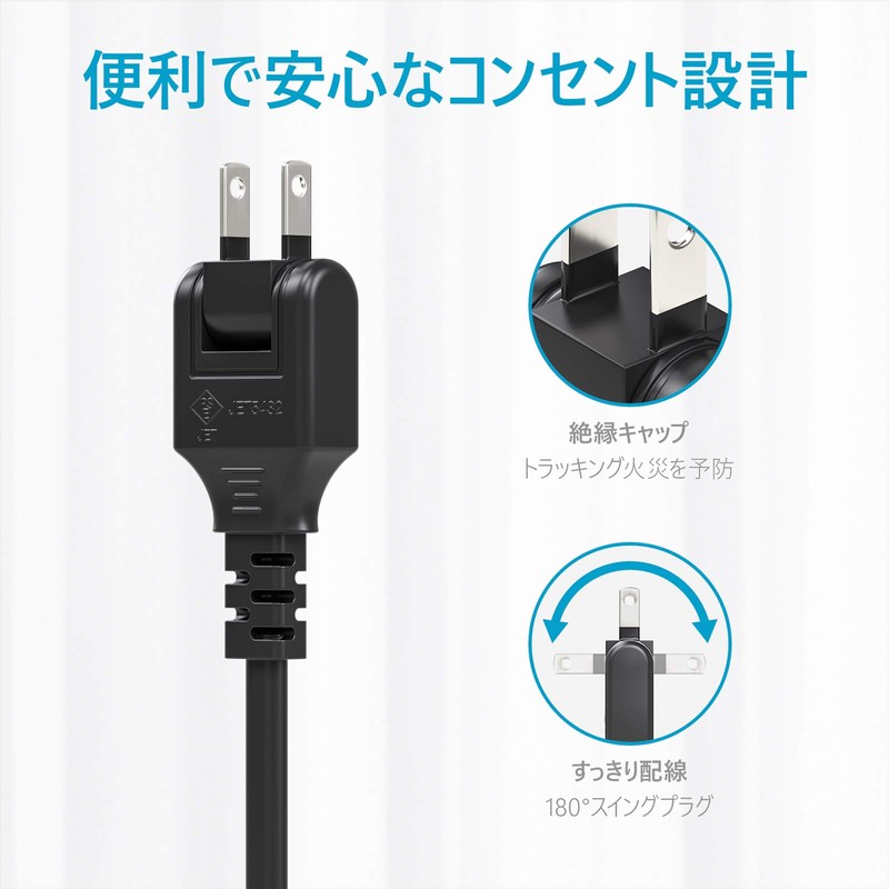 - The extension cord uses a double-coated cord, so it is effective in preventing electrical shock and fire caused by disconnection or broking.