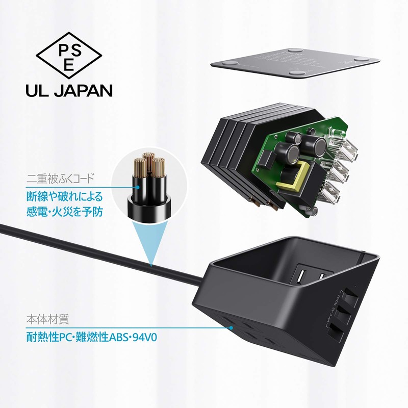 - ✔【MULTIPLE SAFETY PROTECTION】This power tap USB has a built-in power lamp to prevent forgetting to turn it off. Protect your appliances from overheating, overcurrent, overload, and overcharging, this table tap is safe and reliable. Uses a double-coated resin cord with excellent heat resistance, so you can use it for a long time